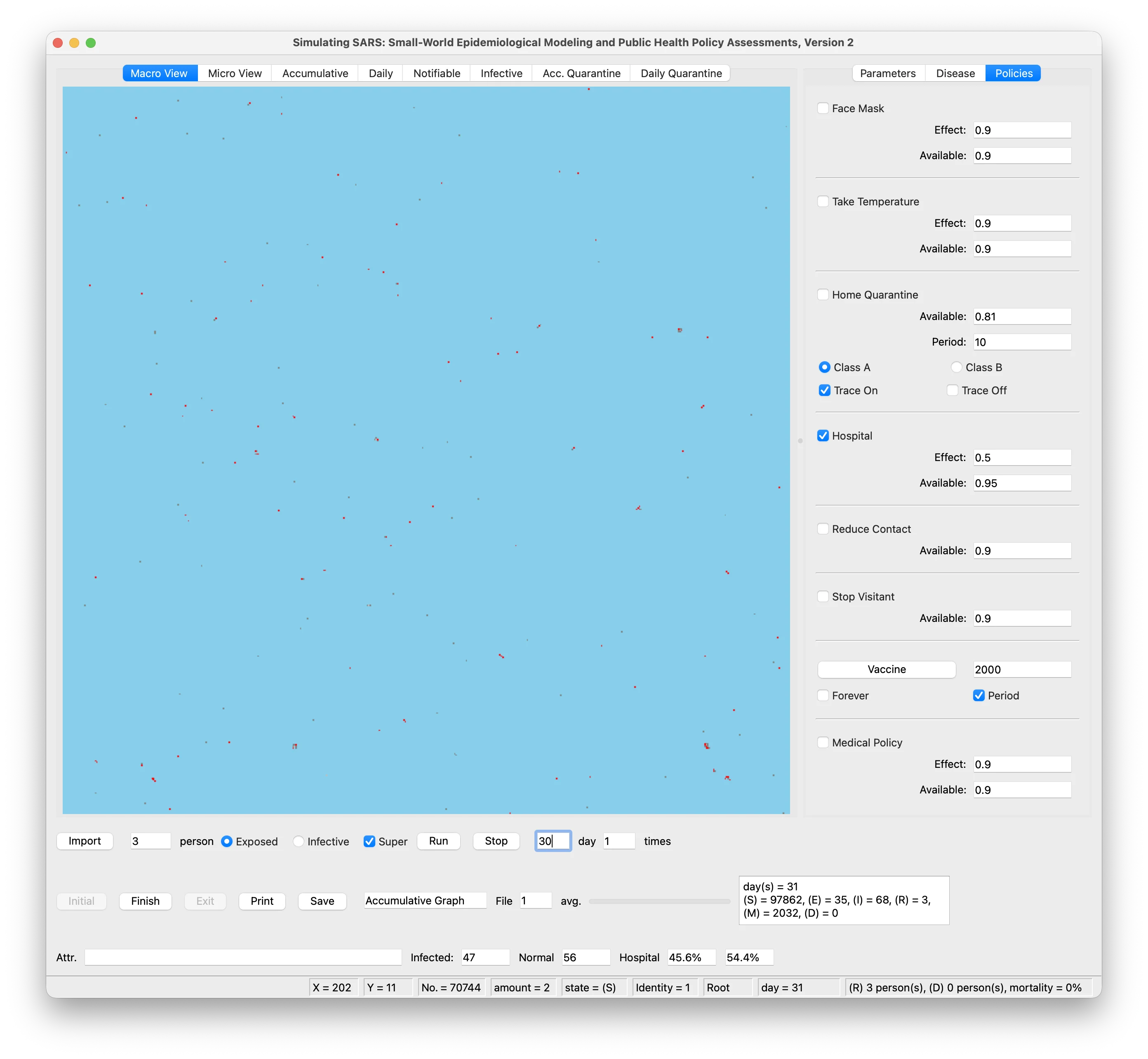 Professor Huang has served as principal investigator for more than thirty research projects funded by Taiwan’s National Science and Technology Council and Centers for Disease Control. His studies address topics such as the transmission dynamics of emerging infectious diseases, public health policy evaluation, and frontier artificial intelligence algorithms. His results have consistently been published in top-tier academic journals, with more than 1,000 citations. He received a High Impact Paper Award from the Society for Modeling and Simulation, and multiple Best Paper Awards from international conferences. Of particular note is his application of advanced computational simulation methods to public health topics, thus contributing to government policies for epidemic prevention and automated external defibrillator deployment. These accomplishments reflect his motivation for social engagement in his scholarly work.
